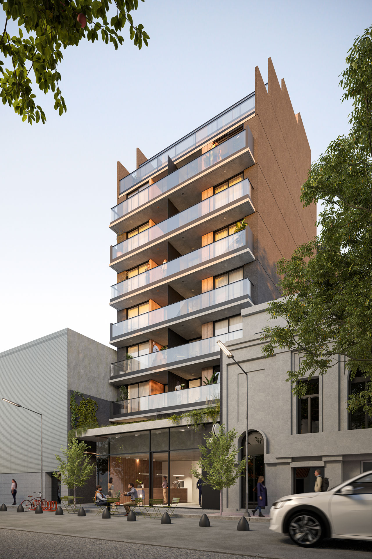El proyecto propone una arquitectura contemporánea, con líneas simples y una lectura limpia del volumen. Departamento con balcones amplios, iluminación natural y una organización eficiente de las unidades hacen de CASA A un edificio pensado para el uso cotidiano y la vida urbana actual.